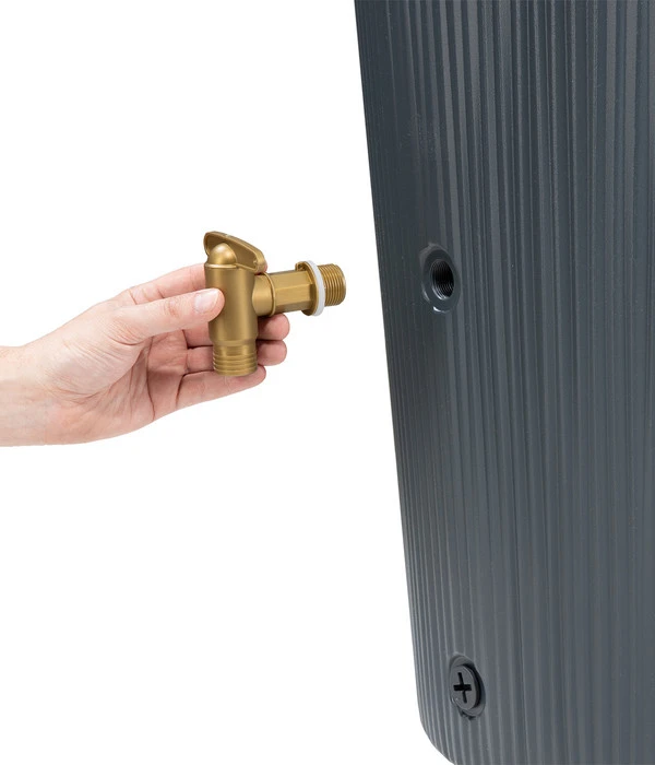 Das Besondere an diesem Regenspeicher ist seine praktische, vielseitige Pflanzschale, die einen angenehmen dekorativen Kontrast zu seiner konischen Form bietet. Sicherlich werden Sie die leichte Bedienung schätzen, denn mit zwei Gewindeanschlüssen zur einfachen Wasserentnahme und einem Kunststoff-Auslaufhahn Aqua-Quick in Messingoptik wird die Handhabung sowie die Bewässerung des Gartens praktisch und kinderleicht. Der Lieferumfang beinhaltet auch eine Filtermatte, ein Komfort-Entnahmeset für die Pflanzschale 2in1 und eine Windsicherung (Flachband). Der 2in1 Regenspeicher Vaso Decor 4Rain ist darüber hinaus zertifiziert und zeugt dadurch von hoher Qualität. Machen Sie Ihren Garten mit diesem Regenspeicher zu einer lebendigen Oase mit Bewässerungssicherheit.