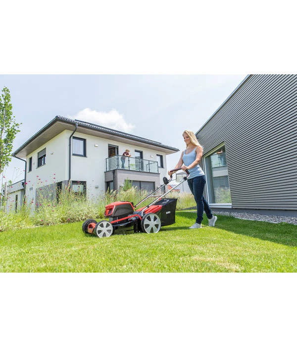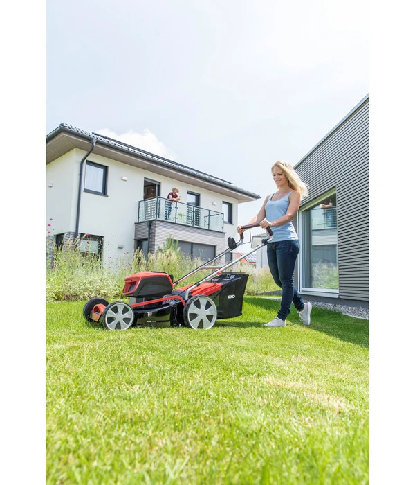 Mit dem trendigen Akku-Rasenmäher 46.9 Li SP der Marke AL-KO macht die Pflege des Gartens einfach Spaß. Der Mäher erfreut durch sein kraftsparendes Design. Er besitzt neben einem ergonomischen Holm einen Radantrieb sowie groß konzipierte Laufräder. Zudem lässt sich der beigefügte Akku in etwa 90 Minuten aufladen, sodass Ihnen Ihr Rasenmäher stets zügig zur Verfügung steht, um Ihr Grün bequem zu stutzen. Der AL-KO Akku-Rasenmäher 46.9 Li SP bietet Ihnen so viele Vorteile, dass Sie Ihn am besten noch heute bestellen, um Ihn schon bald zum Einsatz bringen zu können.
