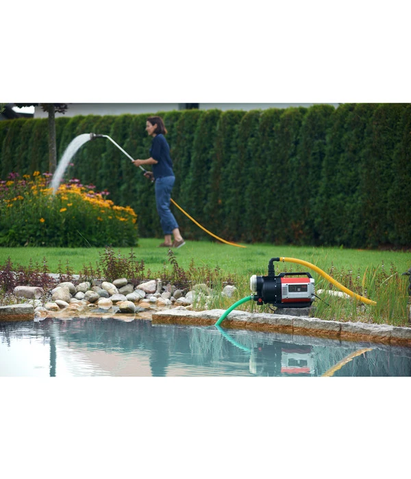 Das effektive Ansaugsystem der AL-KO Gartenpumpe JET 4000 Comfort sorgt dafür, dass das benötigte Wasser auch über größere Distanzen schnell durch den Schlauch transportiert wird. Die maximale Selbstansaughöhe beträgt 8 Meter. Auf diese Weise ist die Pumpe mit einem 1-stufigen Pumpenlaufwerkt in kurzer Zeit einsatzbereit. Bleibt das Wasser unbeabsichtigt aus, verhindert der spezielle Trockenlaufschutz eine Beschädigung. Das Gehäuse der AL-KO Gartenpumpe JET 4000 Comfort ist aus Kunststoff und rostfreiem Edelstahl zusammengesetzt für hohe Stabilität und Haltbarkeit. Die Anschlüsse für die Schläuche entsprechen der üblichen Standardgröße von 1 Zoll, so dass auch bereits vorhandenes Material problemlos mit der Pumpe kombiniert werden kann.