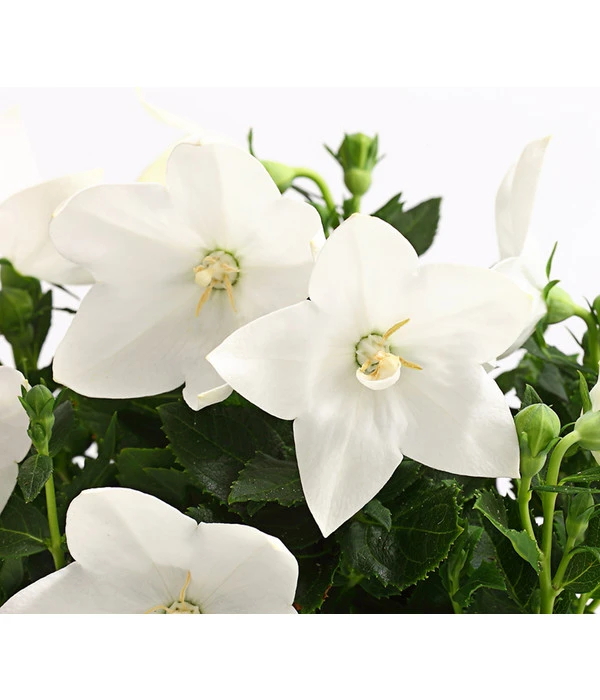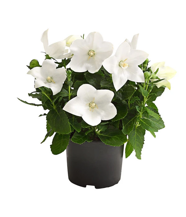 Wenn sich im Mai die ersten dicken Blütenknospen auf den schlanken Stielen zeigen und an kleine Luftballons erinnern, ahnt man noch nicht, welche Blütenpracht darin verborgen liegt. Gehen Sie dann aber wenige Tage später durch Ihren Garten, werden Sie aus dem Staunen nicht herauskommen. Aus den Knospen haben sich prächtige Blütensterne entwickelt, die Ihnen in elegantem Weiß, strahlendem Lavendelblau oder zarten Rosétönen entgegen lachen. Und diese Blütensterne werden von Mai bis September über dem dunkelgrünen Laub der aufrecht und kompakt wachsenden Staude zu bewundern sein. Noch eine Eigenschaft macht die Ballonblume so beliebt: Sie erweist sich als wunderbar unkomplizierte Schönheit, die nicht täglich die pflegende Hand des Gärtners braucht. Lassen auch Sie sich von dem Charme dieser Blütenkünstlerin gefangen nehmen und reservieren Sie ihr gleich ein Plätzchen, an dem sie den ganzen Sommer gut zu sehen ist.