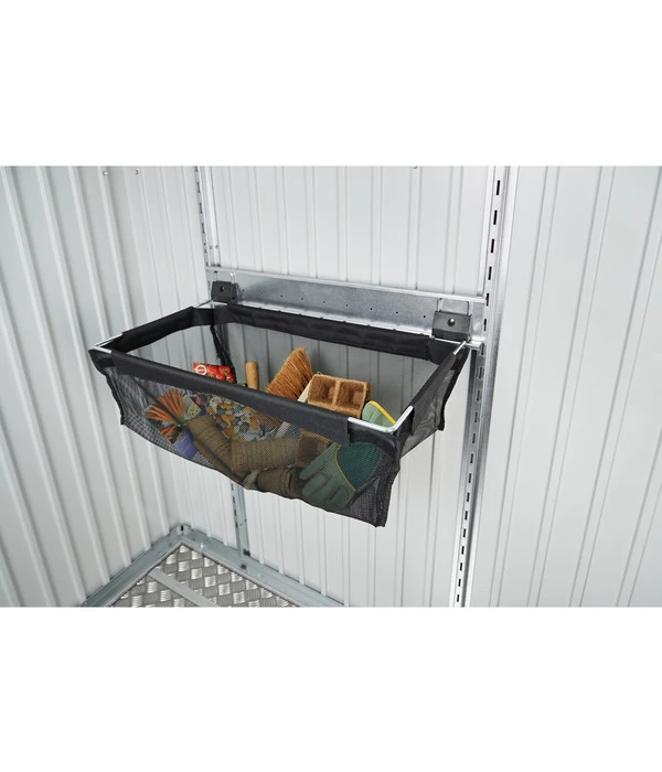 Trotz seiner geringen Größe ist der Einhängesack extrem belastbar. Gegenüber einem Schrank, den Sie mühsam aufbauen müssten, hat der Sack weitere Vorteile: Er wird ganz unkompliziert in zwei Regalsteher eingehängt. Die Wandschiene zum Einhängen ist bereits im Lieferumfang enthalten. Der funktionale Helfer zum Aufbewahren ist für Metallgerätehäuser oder einen Geräteschrank geeignet und wird Ihnen durch seine robuste Verarbeitung lange Zeit Freude bereiten. Wenn Sie das ideale Accessoire suchen, um im Nu Ordnung zu schaffen, dann legen Sie am besten jetzt den Biohort Einhängesack in Ihren Warenkorb!