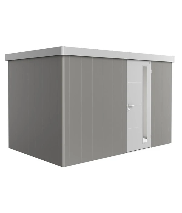 Oft entsteht bei seinem Anblick sofort dieses „Das-muss-ich-haben-Gefühlˮ. Vielleicht geht es Ihnen gerade auch so, weil Sie einen Garten haben, Ihnen die Arbeit dort Freude macht, Sie unbedingt Stauraum brauchen, aber auch Wert auf die Optik legen? Dann passt das Biohort Gerätehaus Neo 2D genau zu Ihnen. Denn der stattliche Stauraum ist hier hinter attraktiven Stahlblechwänden zu finden, die ihren Abschluss oben in einem modernen Flachdach finden. Abgerundet wird das Bild durch die ebenmäßig integrierte Tür mit Lichtband und Edelstahldrückergarnitur. Und die schönste Feinheit, die den hochwertigen Gesamtlook einfach perfekt macht, bilden die gerundeten Gebäudekanten. Die im Farbton abgesetzte Dachattika und die gleichfarbige Tür setzen einen interessanten Akzent innerhalb der eleganten, dezenten Farbgebung. Fazit: Das Biohort Gerätehaus Neo 2D bietet mit seinem ausgefeilten Design einen Anblick, den Sie in Zukunft jeden Tag genießen sollten!