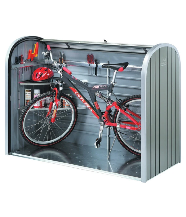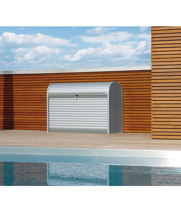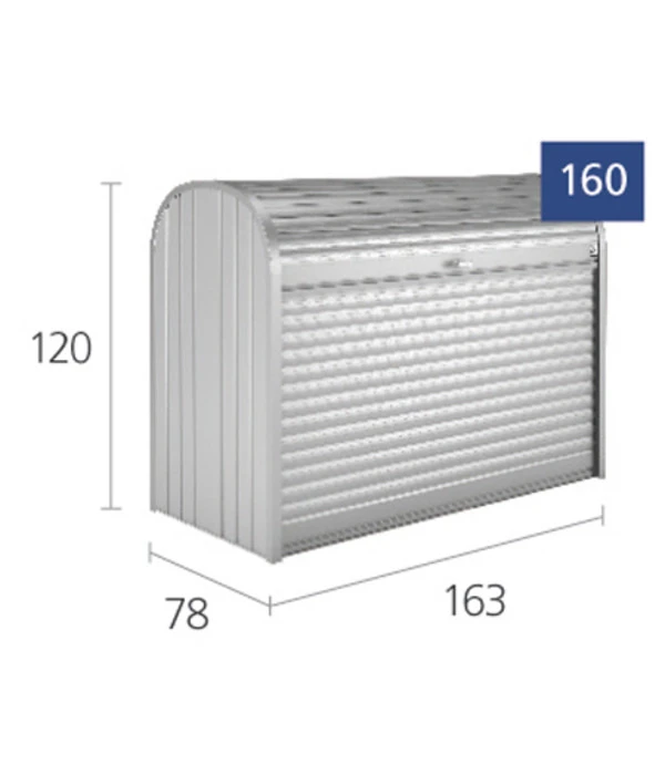 Diese hochwertig verarbeitete Rollladenbox aus Aluminium und Stahl ist ein wahrer Allrounder. Der Biohort StoreMax® 160 hat durch seine durchdachte Größe ausreichend Stauraum, um selbst Mülltonnen oder Rasenmäher zu verstauen. Durch das mitgelieferte Zubehör an Boden, Befestigungsmaterial und einem Ordnungssystem, können Sie herkömmliche Garagen und Haushaltsartikel ordentlich in der Gartenbox lagern. Ebenfalls ermöglicht die Zylinderschloss-Verriegelung, ein sicheres Versperren von teuren Gartengeräten oder Werkzeugen – somit müssen sie keine Sorge haben, dass diese auf wundersame Weise verschwinden.