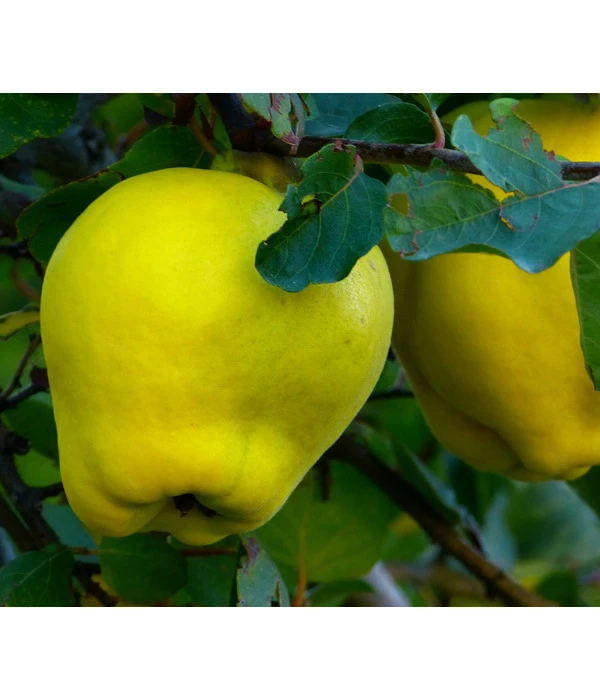 Die Birnenquitte stammt ursprünglich aus der Türkei und verdankt ihren Namen ihren birnenähnlichen Früchten. Die Quitten sind groß, gelb und mit einem pelzigen Flaum ummantelt. Durch die leuchtende Farbe und den verlockenden Duft ist die Birnenquitte ein Highlight im Herbstgarten. Leider sind Quitten heutzutage nicht mehr weit verbreitet, obwohl sie früher in jedem Bauerngarten zu finden waren. Holen Sie sich jetzt diese Besonderheit zu sich nach Hause. Im Gegensatz zur Apfelquitte hat die Birnenquitte weichere Früchte, allerdings sind diese weniger aromatisch. Durch die weicheren Früchte lässt sich die Birnenquitte, im Gegensatz zur Apfelquitte, auch roh verzehren.