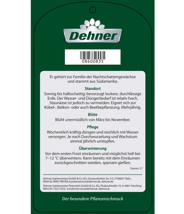 Als wärmedürftiger Südamerikaner ist der Blühstrauch nicht frostfest. Holen Sie ihn deshalb vor dem ersten Frost ins Haus. Sein ideales Winterquartiert ist hell, aber möglichst nicht wärmer als 10°C. Gießen Sie in dieser Zeit gerade nur so viel, dass der Wurzelballen nicht austrocknet. Alle zwei Jahre wird ein Blauer Enzianstrauch im Frühjahr in einen größeren Topf mit frischer Erde gepflanzt. Als Substrat empfiehlt sich die Dehner Pflanzerde.
