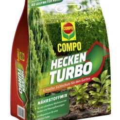 Gerade in Vorgärten und Kleingärten ist das Pflanzen von Hecken häufig die einzige Möglichkeit, einen akzeptablen Sichtschutz zu verwirklichen. Dabei kann es oft einige Zeit in Anspruch nehmen, bis eine ausreichende Wuchshöhe und Blätterdichte der Sträucher erreicht ist. Wenn Sie auf der Suche nach einer effektiven Methode sind, das Wachstum zu beschleunigen, ist der COMPO Heckenturbo genau das Richtige für Sie. Bei der Entwicklung wurde auf eine optimales Verhältnis von Mineralien und Stickstoff geachtet. Der mineralische Dünger stellt der Pflanze so exakt die Nährstoffe bereit, welche Sie für eine zügige Entwicklung benötigt.