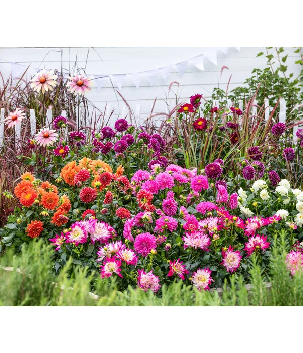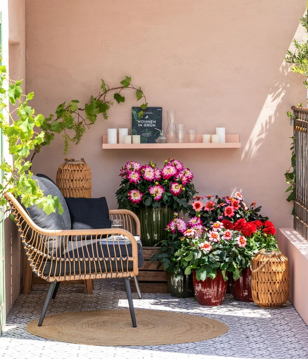 Dahlien verzaubern Gärten und Balkone mit prächtigem Blütenreichtum, der über viele Wochen nichts von seiner Faszination einbüßt. Und auch die Farbenvielfalt ist spektakulär. Steht man vor der Wahl, welche Farbe man wählen soll, hätte man am liebsten jede. Wenn Sie vor der Frage stehen, mit welcher Blütenschönheit Sie in diesem Jahr Ihren Balkon schmücken möchten, können wir Ihnen diese Dahlie empfehlen. Denn anders als Ihre Nachbarn, die diese prächtige Sommerblume erst mühsam aus der Knolle ziehen müssen, können Sie sich gleich an der ausgewachsenen Schönheit der Balkonpflanze erfreuen und Ihre grüne Oase ist vom ersten Moment an ein herrliches Blütenparadies und lädt zum entspannten Verweilen ein. Dahlien eignen sich aber nicht nur als farbenfroher Star in Balkonkasten, sondern sind auch gerne Leitpflanzen im sommerlichen Blumenbeet und schmücken Gräber.