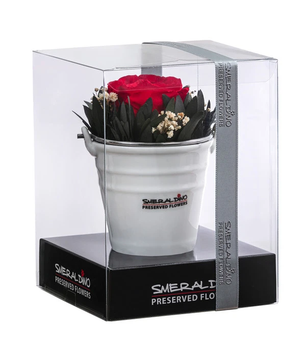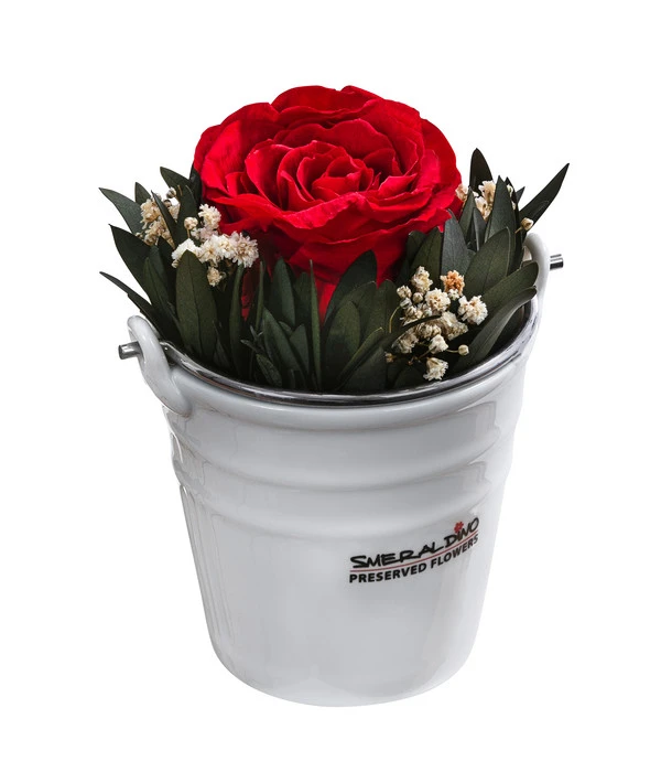 Das Arrangement Ida von Dehner stiehlt anderen Varianten garantiert die Show: Mit der Rose präsentiert es einen Star, der lange hält und leicht zu pflegen ist. Ihre starke Farbe kommt dank des weißen, zurückhaltenden Keramikgefäßes inklusive Henkel aus Metall besonders stark zur Geltung, ganz gleich, ob Sie das Arrangement auf dem Tisch oder der Fensterbank platzieren. Präparierter Eukalyptus und Schleierkraut runden die Optik harmonisch ab. Entscheiden Sie sich jetzt für das Arrangement Ida aus dem Hause Dehner, das nicht zuletzt aufgrund der stilvollen Geschenkbox ein perfektes Geschenk zu besonderen Anlässen wie runden Geburtstagen oder Hochzeiten darstellt!