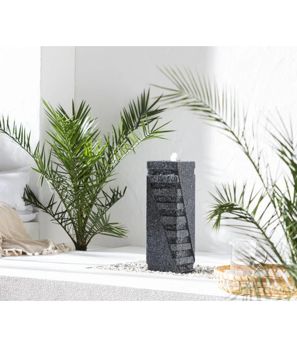 Spannungsreiches Kunstobjekt und Wasserspiel in einem: der Dehner Granit-Gartenbrunnen Riva, ca. H56 cm