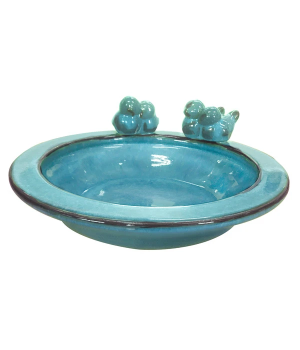Die blaue Dehner Keramik-Vogeltränke besticht nicht nur durch ihre stabile und witterungsbeständige Beschaffenheit, sondern auch durch ihre individuelle Gestaltung. Zwei Vogelpärchen schmücken den Rand der robusten Schale. Jedes Stück ist in mühevoller Handarbeit aus glasiertem Keramik gefertigt und macht diese somit einzigartig. Durch ihren festen Stand kann sie nahezu überall platziert werden und selbst kalte Nächte können ihr aufgrund der frostbeständigen Beschaffenheit nichts anhaben.