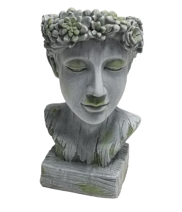 Sie wollen durch einen imposanten Topf ganz besondere Aufmerksamkeit auf eine Ihrer Pflanzen ziehen? Dann ist der Magnesia-Kopf Apollo zum Bepflanzen von Dehner genau das Passende für Sie! Apollo ist in der griechischen Mythologie unter anderem der Gott des Lichts, des Frühlings sowie der Künste und genau das vereint auch dieser Topf. Er bietet Ihren Pflanzen einen Platz zum Gedeihen und überzeugt an einem Ort Ihrer Wahl zusätzlich mit seiner stilvollen Erscheinung. Egal, ob Grün- oder Blühpflanzen, mit diesem Gefäß setzen Sie jedes Ihrer Gewächse perfekt in Szene. Dank der detailreichen Verarbeitung haben Ihre Besucher außerdem immer wieder etwas zum Entdecken. Der schöne Kranz auf dem Kopf, die feinen Gesichtszüge sowie die Struktur der Oberfläche laden zum Verweilen und Betrachten ein.