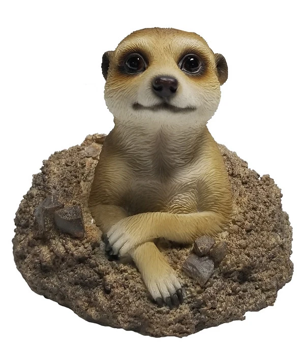 Die drolligen Erdmännchen mögen noch natürliche Feinde in ihrer südafrikanischen Savannenheimat haben, unter den Menschen allerdings dürften sie bereits alle möglichen Goldmedaillen gewonnen haben. Seit Jahren schon sind die winzigen Raubtiere mit der frechen Maske die unangefochtenen Stars etlicher Tierfilme, Kleinzoos und Kinderkinos. Sie sind aber auch süß! Und machen sich daher bestens als Blickfang für Haus, Balkon und Garten, mitten im Blumenbeet, am Wegesrand, im Hof oder als Innen-Deko.