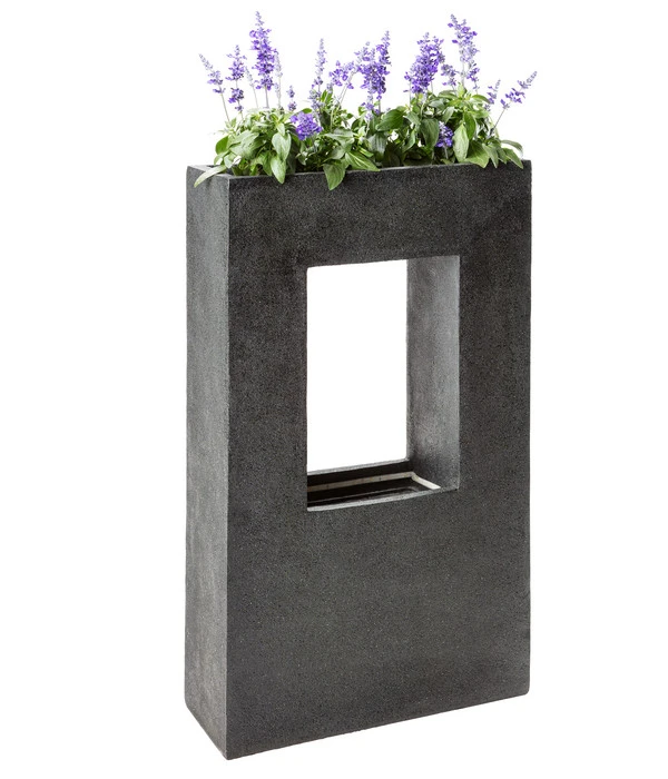 Sie lieben das Besondere und begeistern sich für gute Design-Ideen? Dann trifft der Dehner Polyresin-Gartenbrunnen Grua bestimmt genau Ihren Geschmack! Denn in ihm stecken ein Brunnen und ein Pflanzgefäß – beide Ideen höchst kreativ umgesetzt. Zum einen plätschert das Wasser nicht von einer Etage in die nächste, sondern es rinnt in feinen Fäden durch eine Aussparung im Korpus des Brunnens. Zum anderen befindet sich oben auf dem Gartenbrunnen eine Vertiefung, die Sie ganz nach Wunsch bepflanzen können. Ein multifunktionales, wirklich raffiniertes Dekorations-Objekt aus hochwertigem, witterungsbeständigem Kunststein, das in Ihrem Garten oder auf der Terrasse zum absoluten Blickmagneten wird. Seine besondere Eleganz wird durch den dunklen Anthrazitton und die leichte Maserung des Kunststeins zusätzlich unterstrichen. Der Dehner Polyresin-Gartenbrunnen Grua ist wirklich ein beeindruckendes Deko-Objekt, das Sie einfach haben müssen – greifen Sie also schnell zu!