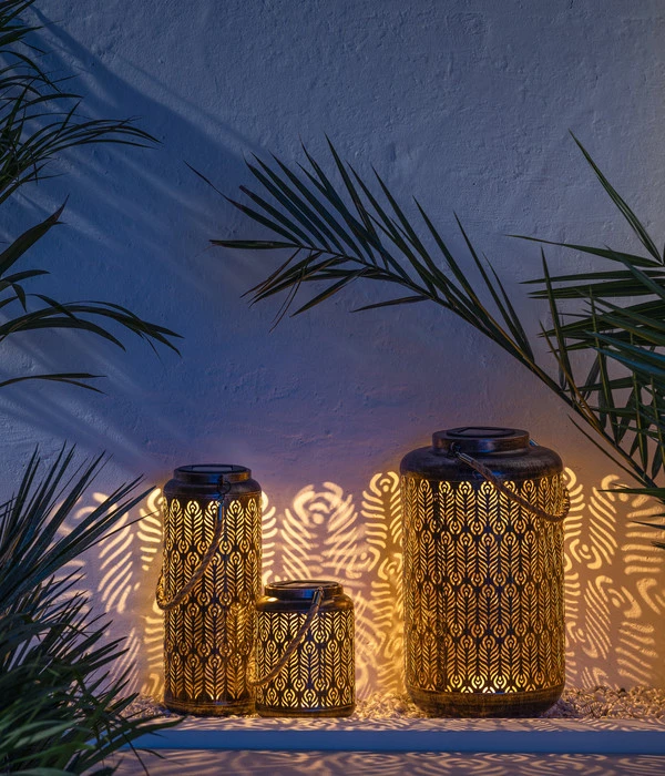 Sitzen Sie am späten Abend noch gerne auf der Terrasse oder dem Balkon und genießen die schöne Atmosphäre? Dann ist die Solar-Laterne Chiara der Marke Dehner das perfekte Accessoire für Sie. Mit der Laterne dekorieren Sie auf besonders zauberhafte Weise Ihren Außenbereich. Durch das faszinierende filigrane Lochmuster der Laterne werden im leuchtenden Zustand wundervolle Schatten geworfen. Das ist wirklich ein märchenhafter Anblick, der das Herz berührt. So können Sie mit der in bester Markenqualität von Dehner hergestellten Solar-Laterne Chiara beeindruckende Highlights schaffen.