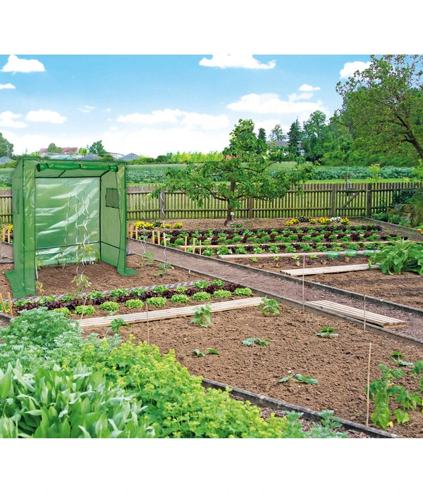 Sie schätzen es, sonnengereifte frische Tomaten direkt vom Stamm zu pflücken? Sie lieben das unvergleichliche Aroma der selbstgezogenen roten Frucht und genießen es, frischen Salat nach Lust und Laune zubereiten? Das Dehner Tomatenreifehaus macht es möglich. Das solide verarbeitete Foliengewächshaus schützt die empfindlichen Pflanzen zuverlässig. Von der Pflanzzeit bis zur Ernte sorgt der Rundumschutz aus hochwertiger PE-Gitterfolie für optimale Bedingungen. Das integrierte Belüftungsfenster schafft das ideale Klima für die anspruchsvollen Stauden. So können die gesunden Früchte gut gedeihen.