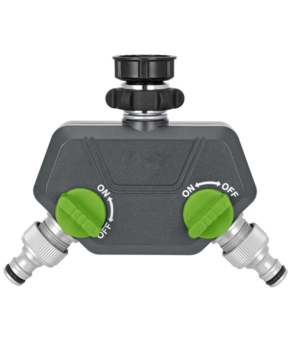 Sie wollen sich das Gießen Ihrer Gartenpflanzen noch einfacher und komfortabler machen, indem Sie Ihr Wassersystem erweitern? Mit dem Zweifach-Verteiler von Dehner können Sie ganz simpel zwei Anschlussgeräte gleichzeitig benutzen! Das hilfreiche Qualitätsprodukt eignet sich für alle handelsüblichen Wasserstecksysteme und wird Ihnen die Arbeit im Garten noch angenehmer gestalten. Die Wassermenge ist mithilfe von Schaltern unkompliziert einstell- und abstellbar. So entscheiden Sie, welcher Bereich oder welche Pflanzen viel oder weniger Flüssigkeit benötigen, sodass Sie individuell auf die Bedürfnisse Ihrer Gewächse eingehen können. Nutzen Sie diesen Komfort bei der Gartenpflege und genießen Sie die bekannte Dehner Markenqualität, mit der die Bewässerung Ihrer Pflanzen zum Kinderspiel wird.