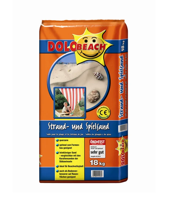 Sie möchten sich in Ihrem Garten eine Wohlfühloase mit Strandgefühl einrichten oder die Sandkiste Ihres Nachwuchses befüllen? Wenn Sie sich für den Dolobeach Strand- und Spielsand entscheiden, treffen Sie eine ausgezeichnete Wahl. Er ist quarzarm, von feinkörniger Qualität und erinnert an den Korallensand der Südseeinseln. Falls Ihr Kind gerne mit Förmchen Sandkuchen backt oder Burgen baut, steht ihm mit dem gut formbaren Strand- und Spielsand von Dolobeach das optimale Material zur Verfügung. Seine tollen plastischen Eigenschaften sorgen für tolle kreative Ergebnisse, die nicht sogleich in sich zusammenfallen.