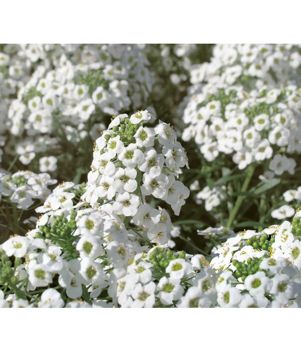 Wie ein Teppich aus kleinen, unzähligen Blüten ziert der Duftsteinrich, auch Steinkraut genannt, Beete und Rabatte. Nicht umsonst trägt Sie den Namen Duftsteinrich: denn während der Blütezeit von April bis Oktober, verströmen die zahlreichen, runden Blütenköpfe einen leichten, honigsüßen Duft. Durch den hängenden Wuchs eignen sich Lobularien perfekt als Kombinationspflanze in Balkonkästen, Ampeln oder Trögen.