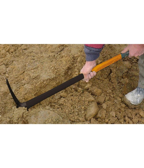Möchten Sie ein neues Beet oder kleines Feld in Ihrem Garten aufbereiten, ist die Fiskars Kreuzhacke 200 genau das Richtige für Sie. Sie eignet sich besonders gut für grobe Tätigkeiten wie Graben oder Wurzeln abschneiden und zur Bearbeitung von steinigen, harten Böden. Dafür verfügt die Fiskars Kreuzhacke 200 auf der einen Seite über eine Vierkantspitze und gegenüberliegend über eine flache, schmale Schaufel. Beide Enden sind geschärft, um präzise arbeiten zu können. Die insgesamt 90 cm lange Hacke besteht aus geschmiedetem Karbonstahl, der gehärtet und vergütet wurde und somit eine hohe Stabilität und Robustheit aufweist. Zusätzlich befindet sich am Ende des Stiels ein komfortabler Antirutsch- und Antivibrationsgriff.