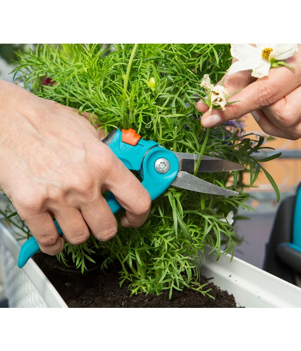 Das Stutzen und Zurückschneiden der Balkonbepflanzung gehört in jeder Saison zu den unentbehrlichen Schritten, damit die Freude an Ihrer Bepflanzung lange erhalten bleibt. Mit der city gardening Balkonschere werden diese Arbeiten zum Kinderspiel. Dank der ergonomischen Griffe ist ein bequemer Umgang auch bei einer längeren Nutzungsdauer garantiert. Die Sicherheit ist durch den einhändig bedienbaren Verschluss gewährleistet. So können Sie sich voll und ganz auf die Pflege Ihrer Pflanzen konzentrieren!