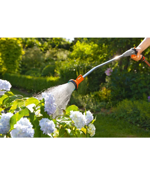 Jede Pflanze in einem großen Blumenbeete gießen oder Hängepflanzen zum Bewässern einfach und unkompliziert erreichen. Egal welche Arbeiten in Ihrem Garten mit dem Wasserschlauch anfallen, der Gießstab ist Ihr perfektes Hilfsmittel. Mit einer Länge von 75 cm kommen Sie damit auch in großen Beeten an die Pflanzen in der Mitte heran. Auch diese können sie gezielt und ausreichend bewässern. Schließen Sie den Gießstab einfach an einen Gartenschlauch an und schon können Sie Wasser mit einer großen Reichweite in Ihrem Garten verteilen. Nie wieder Gießkannen durch den Garten schleppen – der Gießstab von GARDENA erleichtert die Gartenarbeit erheblich.