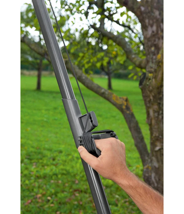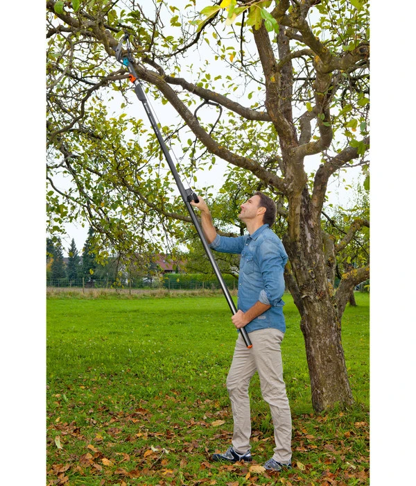 Der Beschnitt von Bäumen in Ihrem Garten kann sehr kräftezehrend sein. Besonders für höhere Bäume ist oft das Besteigen einer wackeligen Leiter vonnöten, um dann in luftigen Höhen große Kraftanstrengungen mit einfachen Gartenscheren oder Sägen zu vollbringen. Die GARDENA combisystem-Bypass-Baumschere lässt sich ohne großen Aufwand am Teleskopstiel des combisystems anbringen. Damit erreichen Sie einfach und sicher auch hoch hängende Äste vom Boden aus. Auf den Gebrauch einer Leiter können Sie dabei verzichten und sich stattdessen auf Ihren sicheren Stand am Boden verlassen. Die GARDENA combisystem-Bypass-Baumschere verfügt über eine Asteinhängung, die Ihnen die Arbeit zusätzlich erleichtert.