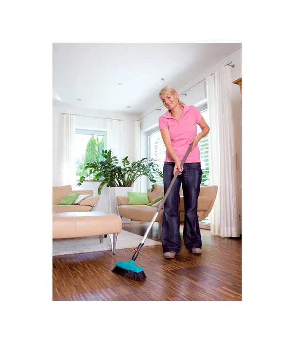 Mit dem GARDENA combisystem Stubenbesen erhalten Sie eine hochwertiges Reinigungsgerät und eine Erweiterung für Ihre Arbeitsgeräte, die Sie dank des GARDENA-Systems besonders platzsparend aufbewahren können, denn Sie brauchen praktisch nur einen Stiel für viele Geräte. Ganz individuell können Sie den GARDENA combisystem Stubenbesen Ihrer Körpergröße anpassen. Dazu sind alle combisystem-Stiele, die es in drei verschiedenen Längen gibt, geeignet. Der Besen hat eine Arbeitsbreite von 34 Zentimetern. Der Kunststoff-Sockel ist 30 Zentimeter breit und hat abgerundete Kanten, damit keine Kratzer an Möbeln oder Wänden verursacht werden. Besonders ausgeklügelt sind die langen, weichen Borsten des GARDENA combisystem Stubenbesens. Die Mischung aus Kunststoff- und Rosshaar-Borsten sorgt für Hygiene und gleichzeitig für optimale Staubaufnahme.