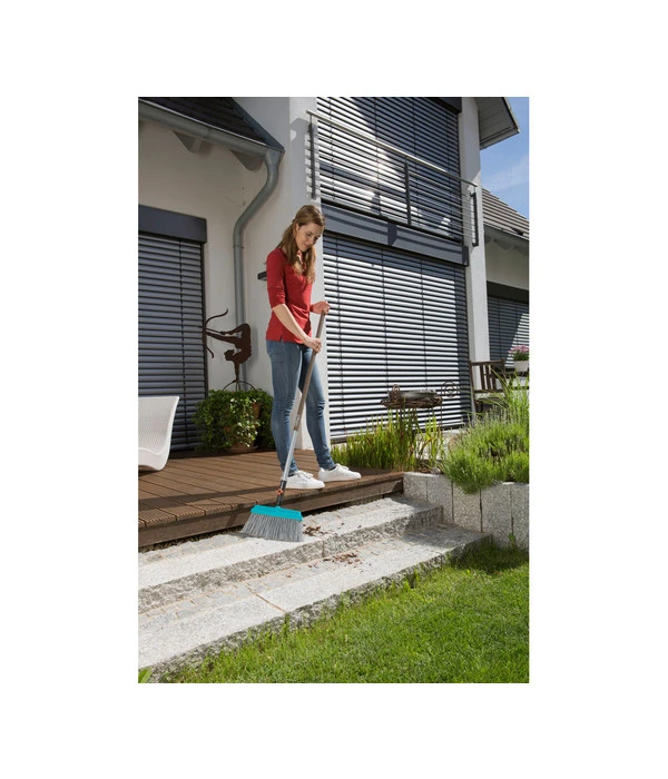 Der Besenkopf besteht aus stabilem Kunststoff, sodass Sie ihn einfach mit Wasser reinigen dürfen. Darüber hinaus handelt es sich um ein schlagfestes und witterungsbeständiges Gehäuse. Sie können den combisystem Besen der Marke GARDENA im Freien aufbewahren und haben diesen dann immer zum Einsatz bereit. Auch Spinnweben und Staub werden von den dichten, langen Borsten beseitigt. Im Nu ist sind Ecken und schwer zu erreichende Stellen wieder sauber.