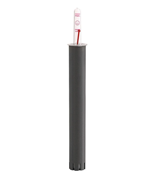 Der GREENBAR® Wasserstandsanzeiger besteht aus einem strapazierfähigen Kunststoffmaterial und hat eine Skala, die Ihnen den optimalen Stand des Wassers im Tank anzeigt. Das heißt: Der Fühler sollte idealerweise immer zwischen den Markierungen „Min“ und „Max“ stehen. Je nach Standort und Pflanzengröße reicht der Wasservorrat im Tank bis zu 8 Tage.