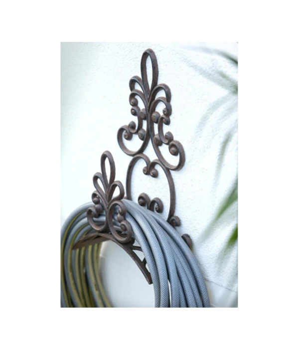 Wer seinen Garten nicht mit einer Gießkanne, sondern einem Schlauch wässert, kennt das Problem: Entweder liegt der Schlauch vor und nach dem Wässern mehr oder weniger unordentlich irgendwo herum oder er muss jedes Mal mühsam aus dem Geräteschuppen geholt und wieder zurückgetragen werden. Da haben wir eine bessere Idee: Ein gusseiserner Schlauchhalter sorgt dafür, dass der Gartenschlauch immer ordentlich aufgeräumt ist und das harmonische Bild von einem sorgsam gepflegten Garten nicht stört. Das Beste aber: Ein gusseiserner Schlauchhalter wie dieses Modell hier ist nicht nur ein praktisches Zubehörteil für den Garten, sondern zugleich ein exquisites Deko-Objekt mit nostalgischem Flair. Der Wandschlauchhalter wurde aus extrem stabilem Gusseisen hergestellt und ist deshalb absolut wetter- und frostbeständig – viele Jahre und Jahrzehnte lang. Die großzügigen, wunderschön verspielten Ornamente erinnern an vergangenen Zeiten und wirken gerade in dem Edelrost-Design so reizvoll.