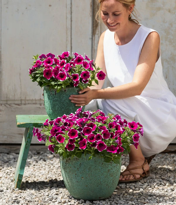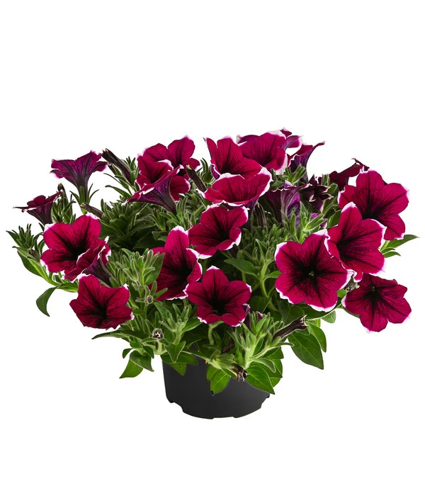 Suchen Sie nach wundervollen Blumen, die schon von Weitem auf sich aufmerksam machen, während sie eine naturnahe Atmosphäre versprühen sowie kräftig und voluminös aussehen? Dann sollten Sie sich die Hängepetunie ‚Picotee‘ aus dem Sortiment von Dehner genauer ansehen. Sie erhalten eine Pflanze, deren Triebe bis zu einem Meter lang werden und die von Mai bis Oktober durch attraktive, leuchtende Blüten in starken Farben beeindruckt. Dieser Effekt wird durch einen dichtverzweigten und kompakten Wuchs zusätzlich verstärkt.