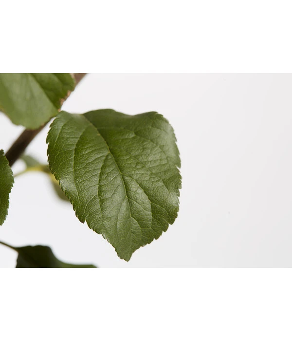Dicht an dicht hängen im Herbst die Rubinolas am Baum und warten darauf, geerntet zu werden – mit dem Apfel ‘Rubinola‘ erweitern Sie Ihr eigenes Obstangebot um eine sehr schmackhafte und dabei robuste Apfelsorte. Die Apfel-Neuheit ist eine Kreuzung aus den Sorten ‘Rubin‘ und ‘Prima‘, für die erst im Jahr 1995 Sortenschutz beantragt wurde. Sie trägt eine mittelfrühe Blüte und bringt einen regelmäßigen, relativ hohen Ernteertrag. Die mittelgroßen Früchte haben eine gelbe Schale mit karminroter, gemaserter Deckfarbe und gelbliches Fruchtfleisch. Aufgrund ihres süß-fruchtigen Aromas mit säuerlichen Akzenten sind sie ideal zum Frischverzehr geeignet. Aber auch verarbeitet in Kuchen, Marmelade, Kompott oder anderen Obstspeisen ist diese Sorte eine echte Bereicherung. Der Apfel ‚Rubinola‘ hat einen sehr starken, buschig-aufrechten Wuchs und kann Höhen von 3-4 m erreichen. Erntereif sind die Äpfel ab September und können locker bis über den Jahreswechsel gelagert werden. Und was Obstgärtner auch an der neuen Sorte schätzen: sie ist schorfresistent sowie unempfindlich gegen Mehltau.