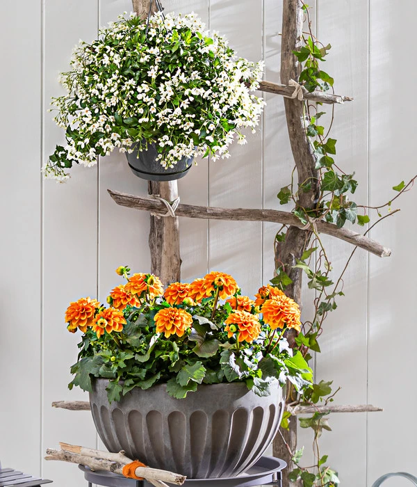 Der Jasminblütige Nachtschatten gehört der gleichnamigen Pflanzenfamilie der Nachtschattengewächse an. Lassen Sie sich von den Namen ‚Jasmin‘ jedoch nicht in die Irre führen, der Sommerjasmin hat nichts mit einem Jasmin oder gar dem Falschen Jasmin gemein, vielmehr trägt er seinen Namen aufgrund der schneeweißen Blüten, die in Größe und Form dem Jasmin unheimlich ähneln. Hierzulande gilt das Nachtschattengewächs als robuster, rankender Sommerblüher, welches bis in den späten Herbst hinein seine sternförmigen Blüten in voller Pracht zeigt. Da die Triebe bis zu zwei Meter lang werden können, kommen diese in der Ampel besonders schön zur Geltung.