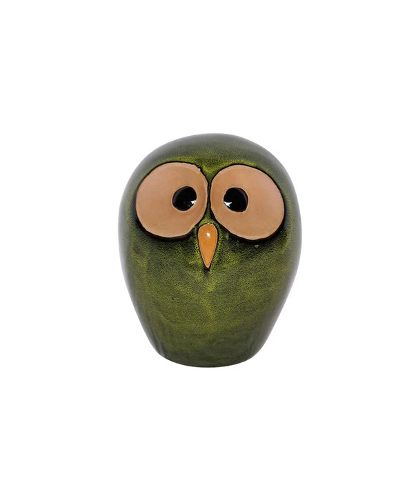 Ist sie nicht zu niedlich, die Keramik-Eule, wie sie einen so anschielt. Das macht die Keramik-Eule wirklich mehr als liebenswert. Und diesem leichten „Silberblick“ kann man zudem kaum ausweichen. Aber vielleicht geht es Ihnen so wie den meisten Menschen, die sich dem gar nicht entziehen wollen. Sondern Sie möchten die Keramik-Eule einfach nur in ihrer Nähe haben. Mit ihren 23 cm in der Höhe verfügt die Keramik-Eule über eine beachtliche optische Präsenz, die dafür sorgt, dass sie immer ihre volle Wirkung entwickelt. An jedem Ort in Ihrem Wohn- oder Outdoor-Ambiente, den Sie ihr zuweisen. Unser Tipp: Stellen Sie Ihre neue Keramik-Eule einmal in die Erde eines größeren Blumentopfes, vielleicht unter ein Rosen-Hochstämmchen oder halb versteckt zu einem Bambus. Mit ihrer Glasur in diesem wunderschön schimmernden Grünton, fügt sich die Keramik-Eule einerseits ins Umfeld ein und sorgt andererseits für äußerst charmante Deko-Effekte.