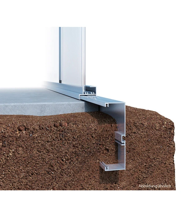 Für einen stabilen und sicheren Stand des Gewächshauses ist ein passendes Fundament unerlässlich. Der Fundamentrahmen Enzian von KGT ist aus verrottungsfreiem Aluminium gefertigt und sorgt für eine stabile, umlaufende Verbindung zwischen Gewächshaus und Untergrund. Durch die kraftschlüssige Verbindung zum Gewächshaus wird dieses sicher fixiert und bleibt auch bei widrigen Bedingungen stabil stehen. Der Rahmen wird einfach im Erdboden eingegraben und ist daher eine schnelle und unkomplizierte Lösung für alle, die keine geeignete Fläche für ein Betonfundament haben oder es nicht fest verschrauben wollen.