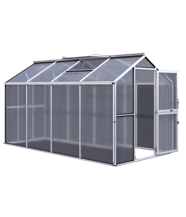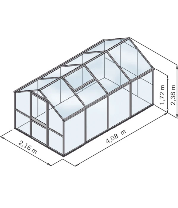 Das KGT Gewächshaus Galant IV ist eine stabile Konstruktion aus Aluminiumprofilen und ISO-Hohlkammerplatten aus hochbruchfestem Polycarbonat, die für optimalen Lichteinfall und eine ausgezeichnete Wärmeisolierung sorgen. Natürlich mit dem bewährten “Longlife“ UV-Schutz, der eine Vergilbung der Platten verhindert. Des Weiteren hat das Haus Dachfenster mit automatischer Öffnung sowie eine geteilte Drehtür mit Drücker und Schloss. Und dank der extra hohen Seitenwände und der entsprechenden Firsthöhe werden Sie sich in Ihrem KGT Gewächshaus Galant IV immer besonders wohl fühlen.