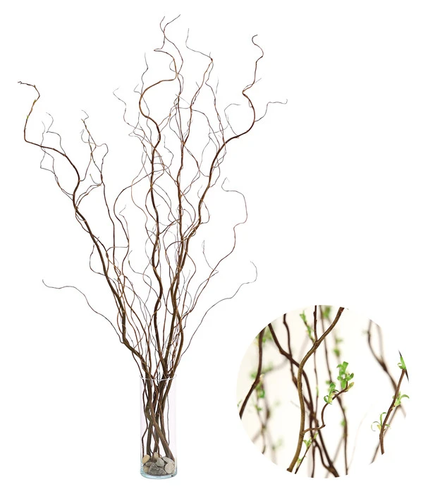 In der Natur sind Korkenzieherweiden besondere Hingucker, die zu jeder Jahreszeit die Blicke auf sich lenken: im Sommer mit dichtem, grünem Laub, das sich im Herbst leuchtend gelb färbt und im Winter, wenn die interessant gedrehten Zweige sichtbar werden. Und gerade diese eignen sich hervorragend für schöne Dekorationen, die schon ohne viel schmückendes Beiwerk natürlich schöne Akzente im Raum setzen. Hier bieten wir Ihnen einen Bund Korkenzieherweide mit einer Länge zwischen 80-100 cm und laden Sie ein, damit Ihre individuellen Deko-Ideen zu verwirklichen.