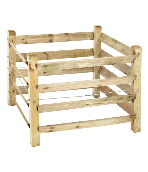 Mit dem Kübler Komposter in den Maßen 100 x 100 x 80 cm für Ihren Garten, gelingt Ihnen auf natürliche und ökologische Weise die Herstellung eines eigenen hochwertigen Naturdüngers. Durch den problemlosen Aufbau des Kübler Komposters können Sie mit dem Kompostieren Ihres anfallenden Grünschnitts oder sonstigen biologischen Gartenabfällen sofort loslegen. Der Kübler Komposter ist aus stabilem Holz gefertigt – weiteres Zubehör ist für die Kompostierung nicht notwendig. Die herausnehmbaren Bretter mit einer Brettstärke von 18 mm des Kübler Komposters sorgen dafür, dass Sie den fertigen Kompost einfach und ohne viel Aufwand entnehmen können. Außerdem wird der Humus in diesem Komposter durch den natürlichen Baustoff Holz und dessen Anordnung der Bretter optimal belüftet. Dies verhindert das Faulen der Abfälle und damit das Entstehen übler Gerüche.