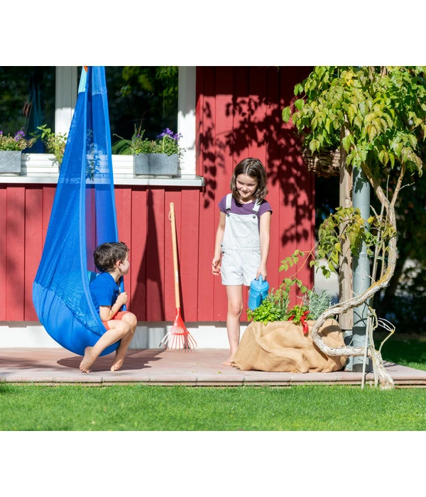 Joki Air von La Siesta können Sie dank der kindersicheren, patentierten Befestigung im Nu auf- und wieder abhängen. Auch an das Thema Sicherheit wurde bei der Konzeption gedacht: Speziell konstruierte Wirbel verhindern, dass sich die in der Höhe verstellbare Kinder-Hängehöhle eindreht. Gerade im Outdoor-Bereich kann es sein, dass Dinge leichter verschmutzen. Daher können Sie Joki Air nach dem Herausnehmen der Kissen einfach bei 30 °C im Schonwaschprogramm waschen. Natürlich kann die Hängehöhle von La Siesta auch im Indoor-Bereich für viel Vergnügen sorgen. Kaufen Sie Joki Air und schenken Sie Ihren Kleinen diese Freude.