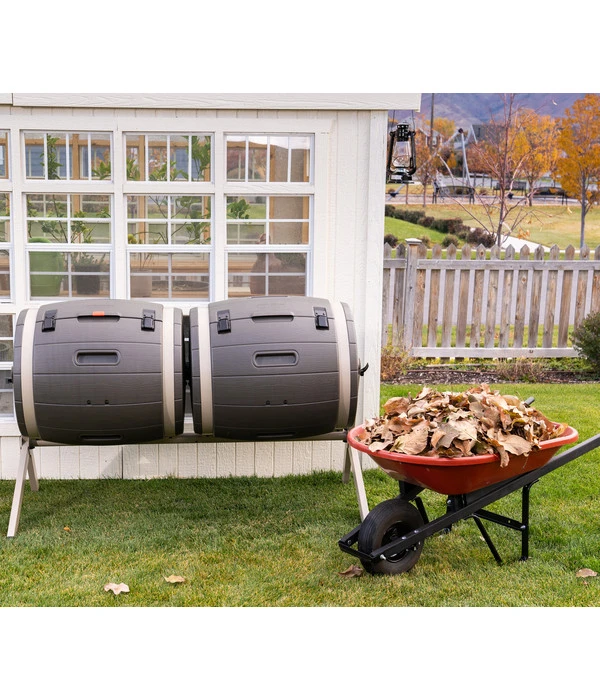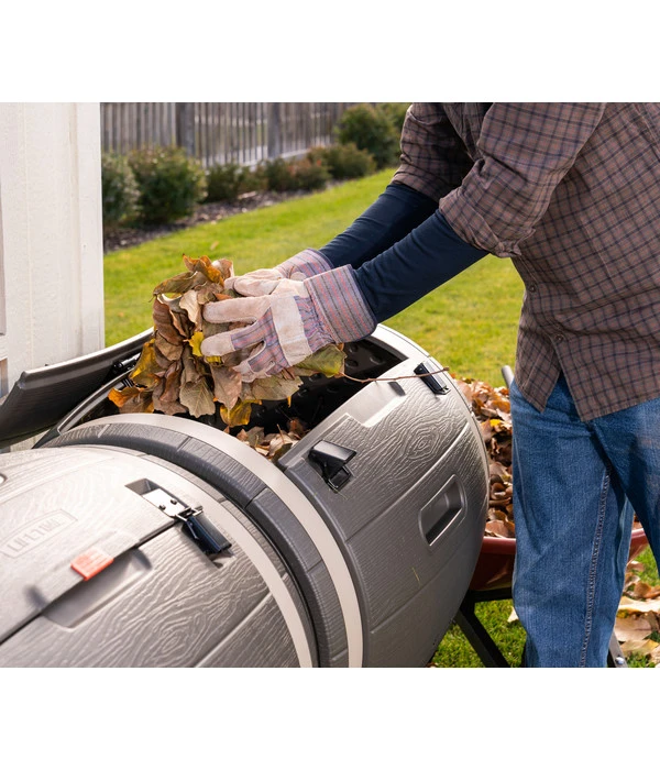 Dank der ausgeklügelten Technik mit gelegentlichem Drehen der Kunststofftrommeln wird das Kompostgut gelockert und perfekt verteilt. Die zwischen den Wänden eingeschlossene Luft sorgt für eine effektive Isolierung und schafft beste Voraussetzungen für einen intensiven Verrottungsvorgang. Eine genaue Kompostieranleitung wird Ihnen mitgeliefert, sodass Sie direkt loslegen können. Besonders vorteilhaft: die Trommel ist dank der bequemen Arbeitshöhe und großen Öffnungsklappe leicht zu befüllen und rückenschonend. Ferner schützt das robuste Stahlgestell optimal vor Nagetieren und sorgt für einen sicheren Stand. Die wetterfeste und UV-beständige Ausführung aus recycelbarem Kunststoff macht den Trommelkomposter zu einem langlebigen Begleiter in Ihrem Garten. Überzeugen Sie sich selbst und bestellen Sie jetzt Ihren Trommelkomposter von Lifetime!