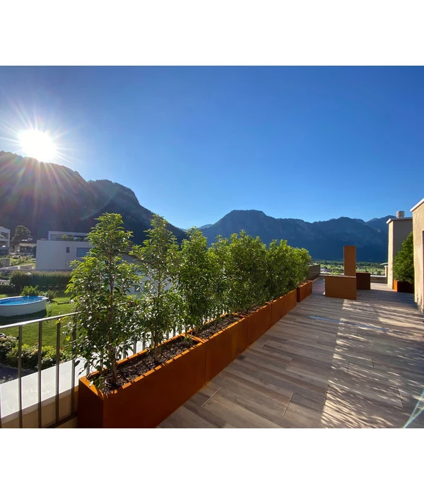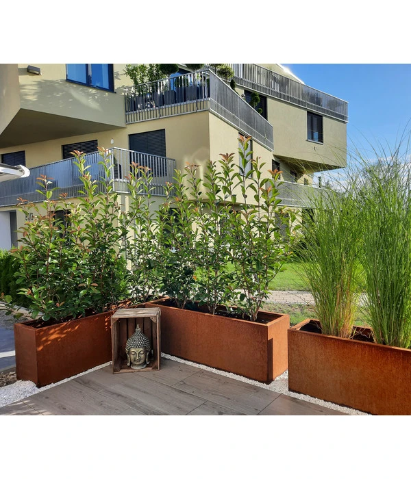 Das Palatino Cortenstahl-Pflanzgefäß Lotte ist die perfekte Ergänzung für jeden modernen Garten und ein wahres Meisterwerk der Gartendekoration. Hergestellt aus hochwertigem Cortenstahl, bietet es Ihnen eine langlebige und witterungsbeständige Pflanzgelegenheit, ohne dass Sie sich um die Wartung kümmern müssen. Im Laufe der Zeit bildet sich eine dekorative und schützende Edelrost-Patina, die Ihren Pflanzen einen besonderen Touch verleiht.