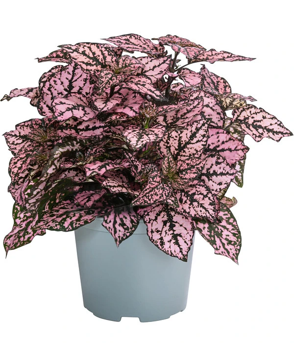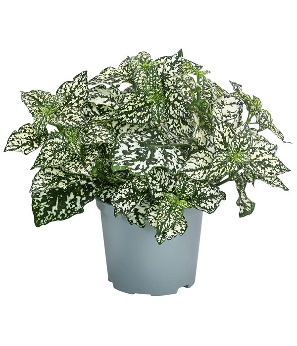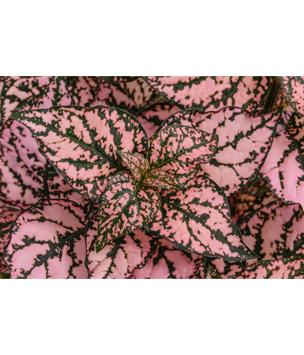 Sie haben diese Pflanze noch nie gesehen? Kein Wunder, denn diese botanische Rarität ist im Moment nicht in vielen Gärtnereien oder Gartencentern zu finden. Dabei gibt sich die aus Madagaskar stammende Pflanze große Mühe, die Aufmerksamkeit der Betrachter zu wecken. Mal zeigt sie ihre grünen Blätter mit roséfarbenen Tüpfeln geschmückt, mal mit roten Punkten verziert – ein so kontrastreiches, aufregendes Farbspiel, dass sich manche Blühpflanze anstrengen muss, mitzuhalten. Noch eine Info, die Ihnen gefallen wird: Die Blattschmuckpflanze ist zwar eine exotische Schönheit aber kein komplizierter Charakter, der aufwendige Pflegemaßnahmen erwartet. Klingt gut? Dann laden Sie die Punktblume ‘Hippo‘ gleich zu sich nach Hause ein – sie wird sich im Sommer auch in Kübeln und Kästen im Outdoor-Bereich hervorragend machen.