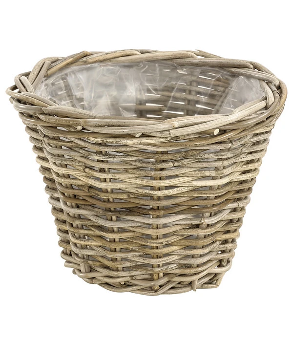 Der Landhaus-Look erfreut sich weiterhin ungebremster Beliebtheit und das ist kein Wunder. Denn dieser unverwechselbare Stil strahlt anheimelnde Gemütlichkeit aus, die fast jeden in ihren Bann zieht. Und was passt besser zu Möbeln und Accessoires im Landhaus-Stil als dieser Rattan-Topf. Das rustikale Geflecht, das dem Rattan-Korb sein ganz eigenes Gesicht gibt, wurde in mühsamer Handarbeit gefertigt, ganz in der Tradition der alten Handwerkskunst der Korbmacherei. Der Rattan-Topf ist naturbelassen und zeigt die ganze Bandbreite an Braun- und Beigetönen, die dem Geflecht einen lebendigen Charakter verleihen. Innen ist der Rattan-Topf mit Plastikfolie ausgekleidet, was sich als sehr praktisch erweist, wenn er mit Blumenerde gefüllt und bepflanzt wird.