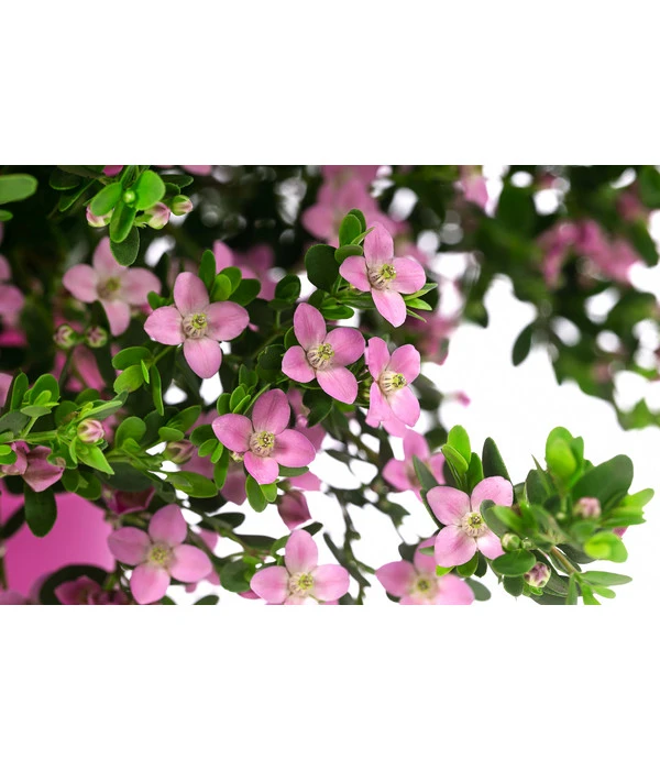 Herrlich, was für einen Duft diese Pflanze verströmt! Die Rote Korallenraute ist von buschigem Wuchs und ziert jede Terrasse, jeden Balkon und jeden Garten. Ihre große Zeit beginnt im Frühjahr ab dem März. Erfreuen Sie sich Tag für Tag an ihrem intensiven und süßen Duft – und an ihrem Aussehen. Die Korallenraute entwickelt ihre glockenförmigen Blüten in einem zarten Rosa. Die Blätter bilden hingegen mit ihrem satten Grün einen schönen Kontrast zur Pracht der Blüten. So wird die rote Korallenraute ein echter Blickfang, wo immer sie auch gerade steht.