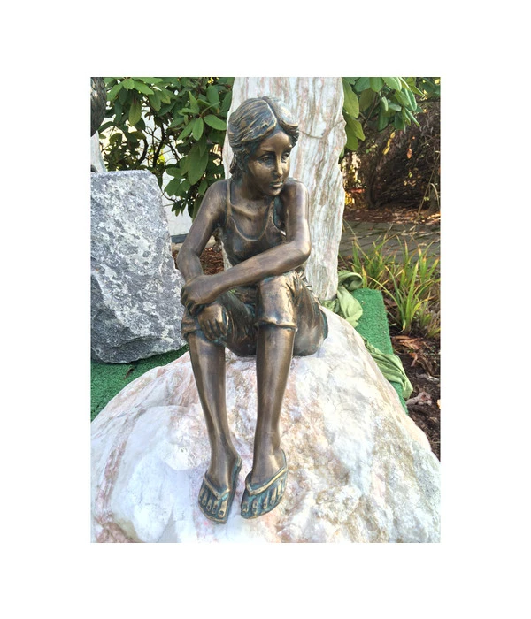 Vielleicht haben Sie einen schönen großen Stein, auf dem das sitzende Rottenecker Bronze-Mädchen Carina dekorativ platziert werden kann? So eignet sich beispielsweise ein idyllisches Fleckchen an einem Teich gut für die Präsentation der bezaubernden Figur, ebenso eine Gartenmauer mit ebener Fläche. Sie müssen sich auch bei kalten Temperaturen keine Sorgen machen, da die hübsche Skulptur witterungs- und frostbeständig ist. Schaffen Sie mit der Mädchengestalt ein romantisches Ambiente, das zum Verweilen und zum Betrachten von Kunst und Natur einlädt. Machen Sie sich oder anderen das wundervolle Rottenecker Bronze-Mädchen Carina zum Geschenk und sichern Sie sich Ihren eigenen Guss.