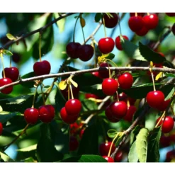 Beim Frischverzehr von Sauerkirschen scheiden sich die Geister: die einen verziehen beim Probieren der sauren Kirschen erschrocken das Gesicht, andere werden zu einem glücklichen Strahlen veranlasst, wenn sie die reifen, saftigen, tief dunkelroten Früchte mit dem säuerlichen Aroma genießen. Einig sind sich beide Kirschenlager aber darin, dass es kaum eine bessere Sauerkirsche für die Verarbeitung zu feinen Konfitüren und Marmeladen, zur Saftgewinnung und Mostherstellung gibt als die ‘Schattenmorelle‘. Sauerkirschen zählen zu den Steinobstsorten und sind generell etwas starkwüchsiger als Kernobstarten. Bei Dehner finden Sie die Sauerkirsche ‘Schattenmorelle‘ als Busch oder Halbstamm, so dass Sie genau die Größe und Form wählen können, die am besten in Ihren Garten passt. Geerntet werden können die Kirschen in der Regel Ende Juli / Anfang August.