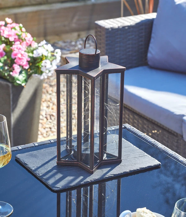 Sind Sie immer wieder auf der Suche nach Möglichkeiten, geschmackvolle Akzente in Ihrem Außenbereich zu setzen und streben Sie zudem nachhaltige Lösungen an? Dann eignet sich die Solar-Laterne Firefly von Smart Garden hervorragend dafür. Die Lampe lädt sich über das Sonnenlicht automatisch auf und spendet bei voller Aufladung lange Licht, damit Sie selbst in den späten Stunden noch gemütlich draußen sitzen dürfen. Sofort sorgt die Lampe für ein stimmungsvolles Ambiente auf Terrassen, Balkonen oder im Lounge-Bereich. Überall überzeugt das Produkt darüber hinaus durch das sternförmige Design und die Gestaltung im Vintage-Chic.
