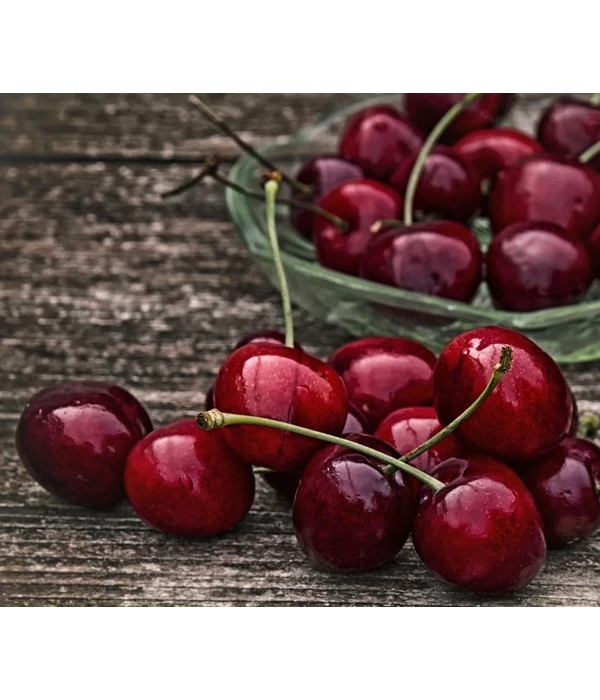 Die wunderschönen Früchte der Kirsche ‚Merchant‘ sind dunkelrot bis fast schwarz, mittelgroß und herzförmig. Sie sind stark glänzend und überzeugen durch ihren süßen, aromatischen Geschmack. Ihr Fruchtfleisch ist weich und etwas heller als die Schale. Sie verfügt außerdem über eine gute Platzfestigkeit. Geerntet werden die Kirschen Mitte bis Ende Juni. Da sie so früh reift, wird diese Sorte nur selten von der Kirschfruchtfliege befallen.Es handelt sich um eine selbststerile Pflanze, was bedeutet, dass ein Befruchter benötigt wird. Hierfür eignen sich andere Kirschsorten, die sich in der Hauptblütezeit überschneiden, welche bei der Süßkirsche ‚Merchant‘ im April ist. Geeignete Befruchter sind zum Beispiel ‚Lapins‘, ‚Burlat‘, ‚Sweetheart‘ oder ‚Van‘. Hören Sie sich doch mal bei Ihren Nachbarn um, ob jemand einen geeigneten Befruchterbaum besitzt. Nur durch die Bestäubung durch andere Sorten, kann ‚Merchant‘ also Früchte tragen. Die Pflanze hat einen mittelstarken Wuchs und wird zischen 3,5 und 5,5 Metern hoch.