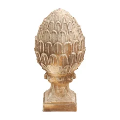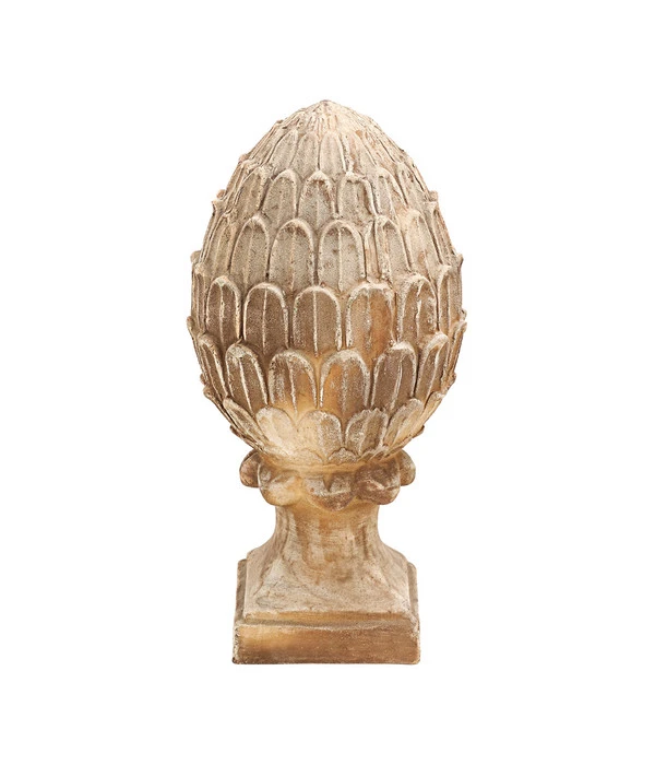 Seit der Antike wird der Pinienzapfen als Symbol der Fruchtbarkeit und Unsterblichkeit verehrt. Aus Stein oder Terrakotta gefertigt schmückte er prächtige Villengärten im alten Rom und wurde von der römischen Armee sogar über die Alpen mit nach Germanien getragen, wo sich in manchen ehemaligen Garnisonen letzte Reste finden. Für uns aber ist eine Terrakotta-Pinie das Symbol mediterraner Kultur und erinnert an schöne Tage unter südlicher Sonne, an entspannte Stunden im Schatten ausladender Pinien-Bäume. Mit der Terrakotta-Pinie können Sie sich ein bisschen dieses Flairs auch in Ihren Garten holen. Die Terrakotta-Pinie wurde in traditioneller Weise von Hand gefertigt, wobei es dem Künstler wunderbar gelungen ist, die typischen Merkmale eines echten Pinienzapfens mit künstlerischer Freiheit zu interpretieren. Der graubraune Farbton dagegen lässt den Eindruck entstehen, als würde die Terrakotta-Pinie auf eine lange Vergangenheit zurückblicken.