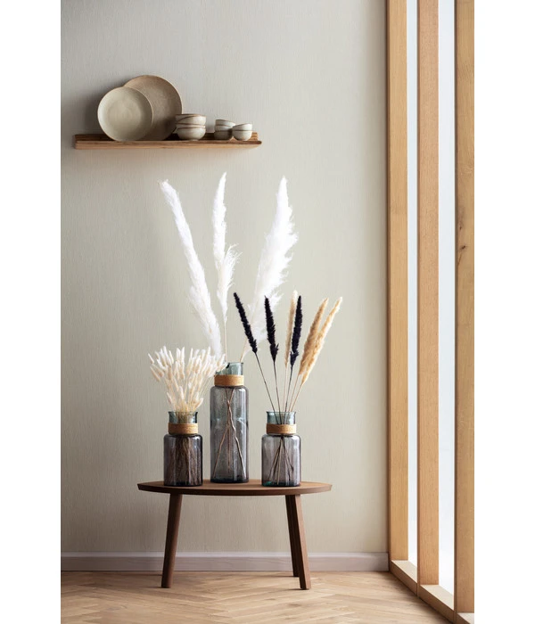Wenn die Blütezeit im Garten langsam zu Ende geht und es draußen immer ungemütlicher wird, würden Sie am liebsten alle Blüten, Gräser und Samenstände mit ins Haus nehmen, sie „retten”, bevor sie zerfallen oder ihre Farbe verlieren. Beschenken Sie sich stattdessen doch einfach mit Trockenblumen wie diesem feinen Bündel mit Hasenschwanzgras. Dabei handelt es sich um die uns allen wohlbekannten Ähren, die so weich und flauschig aussehen, dass man sie unbedingt berühren möchte. Filigrane Schmuckstücke, die getrocknet noch genauso so schön sind, wie sie es zu Lebzeiten waren und mit denen sich unendlich viele Deko-Möglichkeiten eröffnen. Trockenblumen wie das Hasenschwanzgras zeichnen sich durch ihre attraktive Silhouette aus und bringen einen natürlichen Look in Ihre Raumdekoration. Besonders beliebt sind sie selbstverständlich auch deshalb, weil sie keinerlei Pflege brauchen, fast ewig halten und sich mit ihnen sogar Gefäße schmücken lassen, die nicht wasserdicht sind. Legen Sie also schon bald los und lassen Sie Ihre Ideen mit Hilfe von getrocknetem Hasenschwanzgras Gestalt annehmen.
